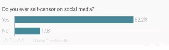 总体来看,78.8%的受访者表示他们对自己在社交媒体上的信息隐私“非常”或“有一些”担忧;有82.2%的人表示会在社交媒体上进行自我审查。