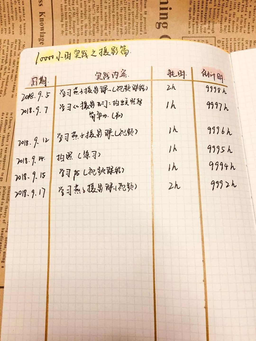 用手帐来记录自己在某一个领域付出的时间,能让我们清楚地看到自己所付出的努力,一万个小时倒计时的仪式感也更容易督促我们坚持下去。