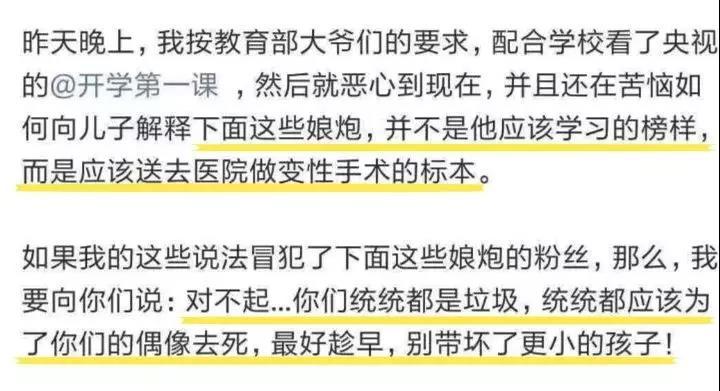「少年娘则中国娘」、「娘炮误国」、「不男不女应该去医院做变性手术的标本」......