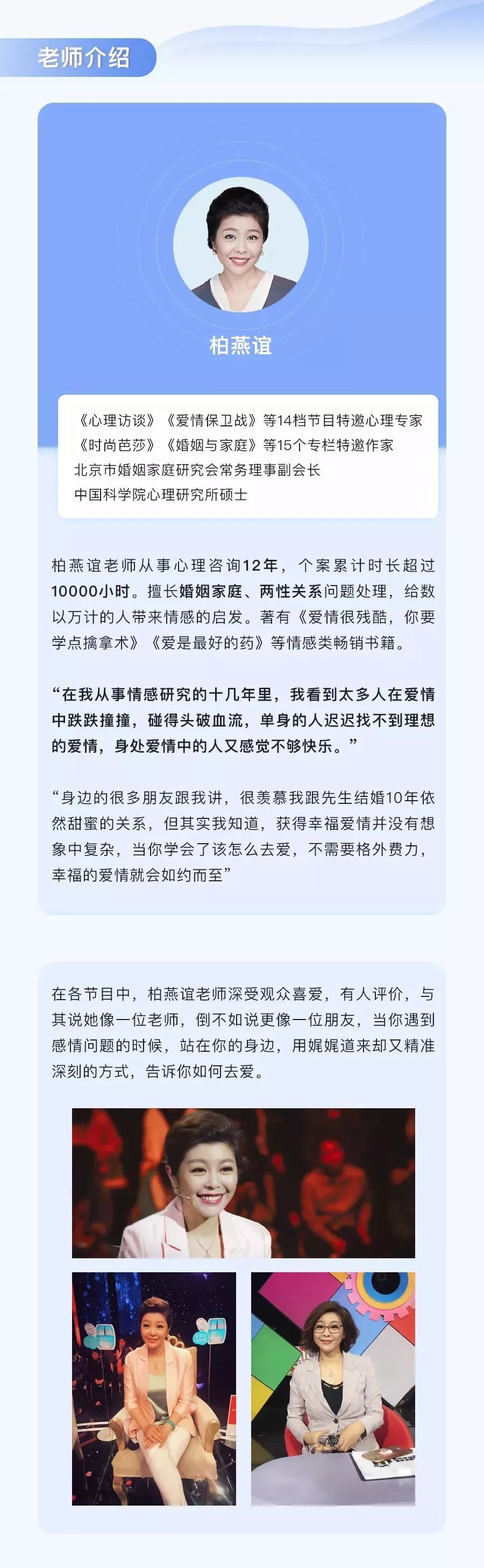 这次,我将把帮助上万人理清情感问题的经验,结合自身经营10年幸福爱情的心得,浓缩到《30堂爱情必修课,做个被宠爱的幸福女人 》一课中。让我们趁一切还来得及,一起把爱情的必修课补了。