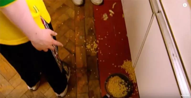 大家也开始讨论分工。于是,男孩们尝试把墙擦干净、把地上的爆米花捡起来,但清理的效果并不理想。