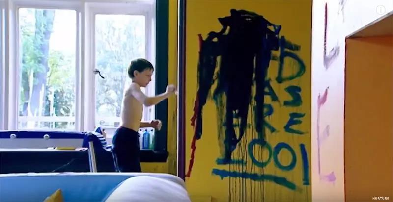 于是,男孩们想方设法地打破规则:在墙上画满涂鸦、把爆米花扔满地毯、用水枪在沙发上眦水、互相在脸上画画......没人管实在太爽了!