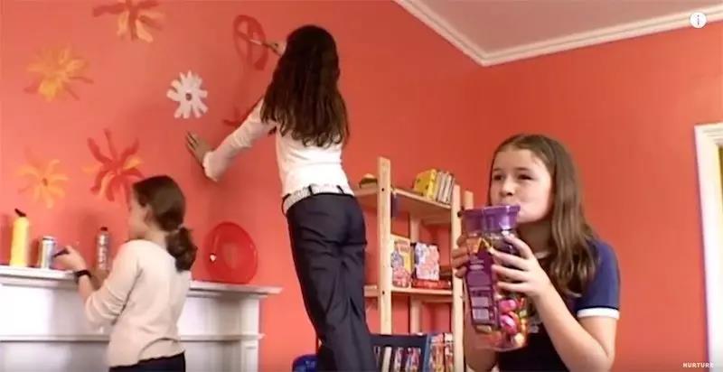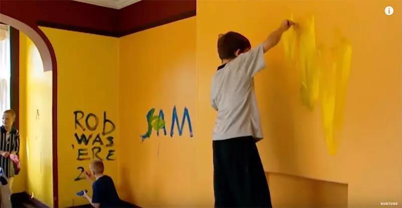 她们本能地进行合作,想要创造“美好”的东西。女孩们拿起颜料,在墙面开画......