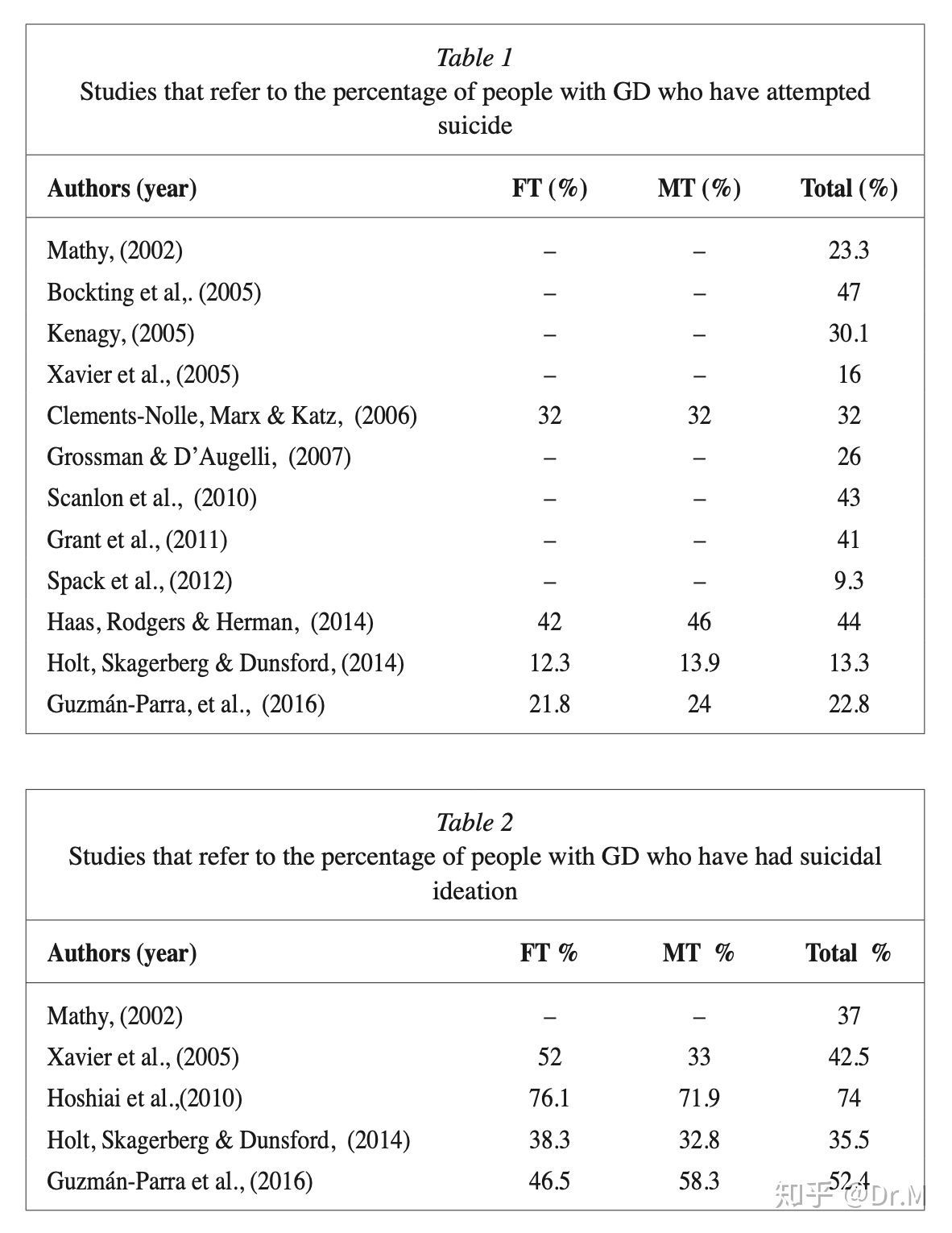 1.Suicidal ideation and suicide attempts in persons with gender dysphoria http://www.psicothema.com/psicothema.asp?id=4483