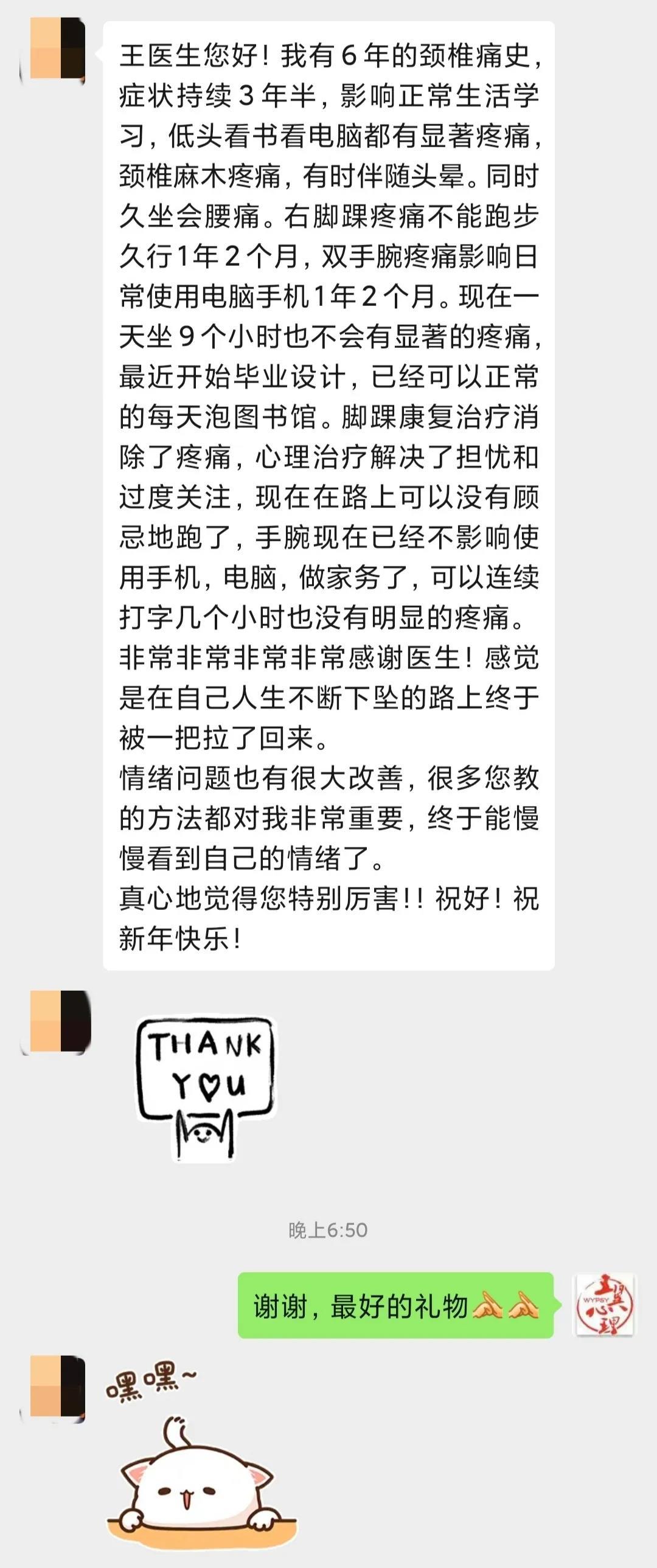 我的反馈:疼痛改善,对躯体症状的焦虑下降。久坐、久行没有明显疼痛。