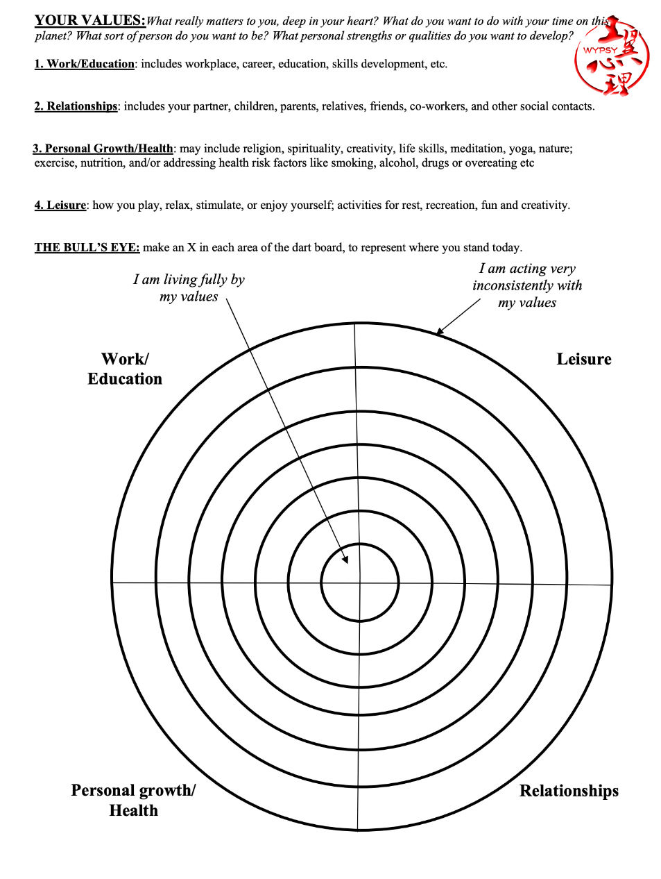 ACT明确价值,承诺行动:明确工作/学习,人际关系,个人成长/健康,休闲四个方面的价值观和目标是什么。“每天记录,看这一天有没有在自己的目标方向上努力,现在做的事能不能帮助我实现目标。”做了几周,有警示作用。