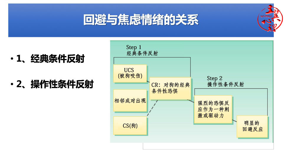 b) 恐惧的习得:遵从条件反射。一朝被蛇咬,十年怕井绳;小时候被海淹过,长大后还会怕水
