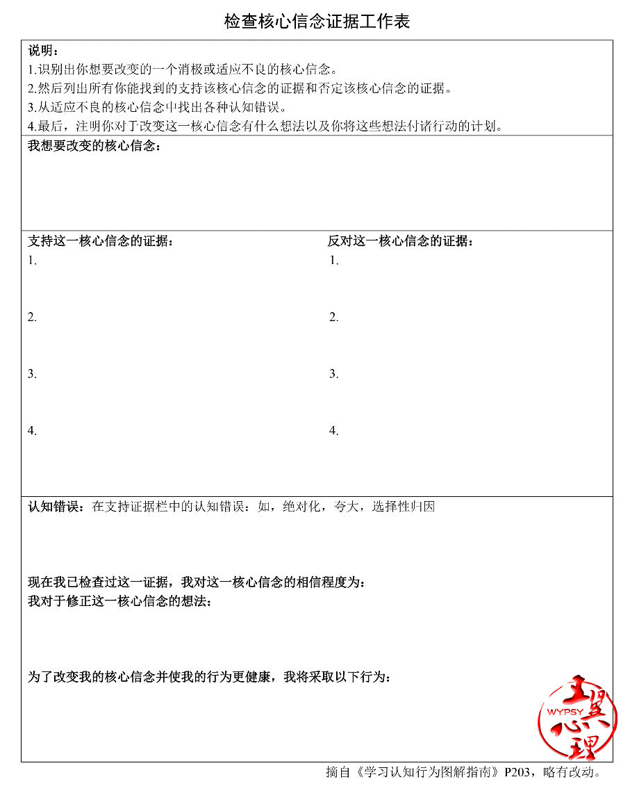 1. 改变“我不好,我不可爱,我能力不行,我很蠢”的核心信念,“这是抑郁患者常见的核心信念,持有这些核心信念很难有较高的自尊和自我价值感。”