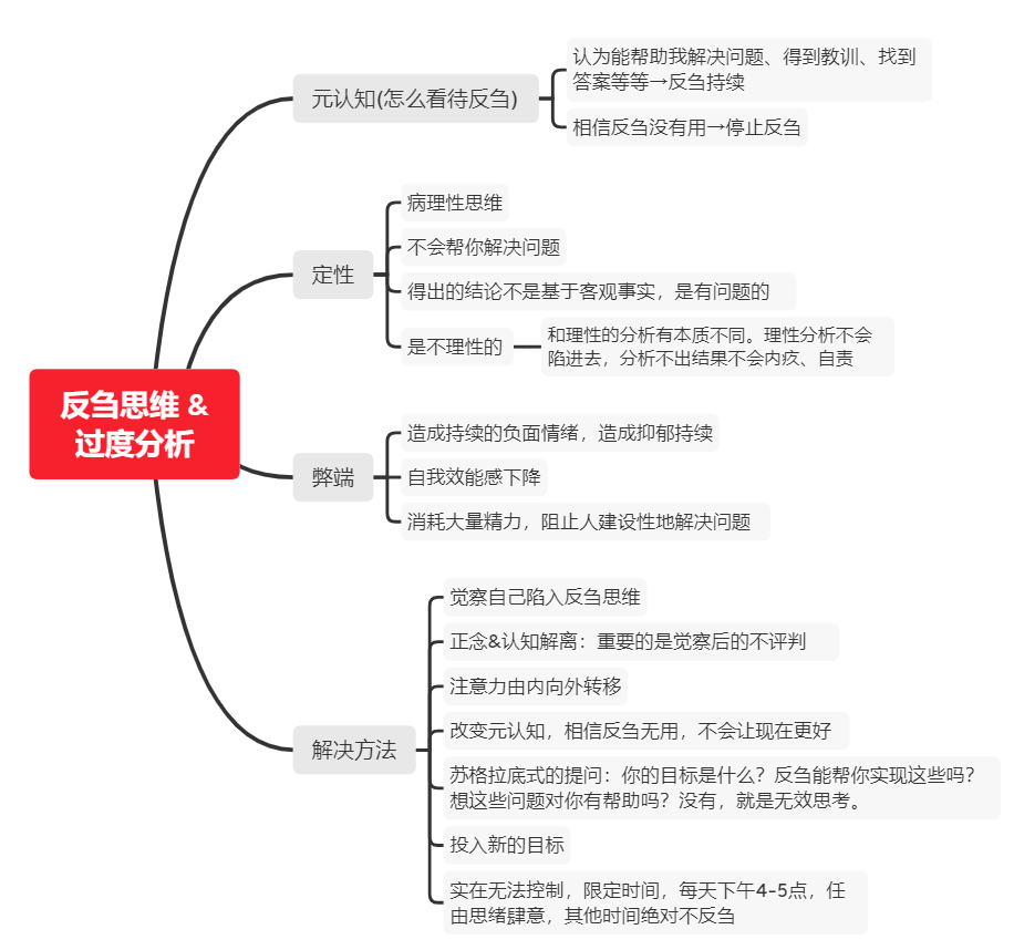 反刍思维:因为无法停止过度分析,王医生与我进行了反刍专题讨论。反刍思维是病理性思维,其他的笔记整理在导图了。