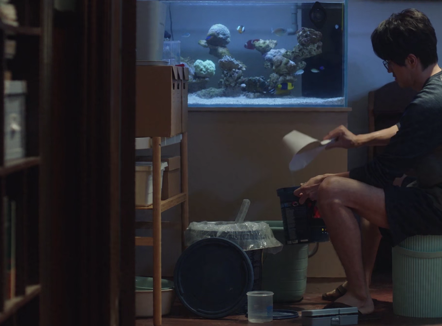 就像自己的名字一样,他把生活过成了一座孤岛,而鱼缸就是阻隔他与外界沟通的墙。