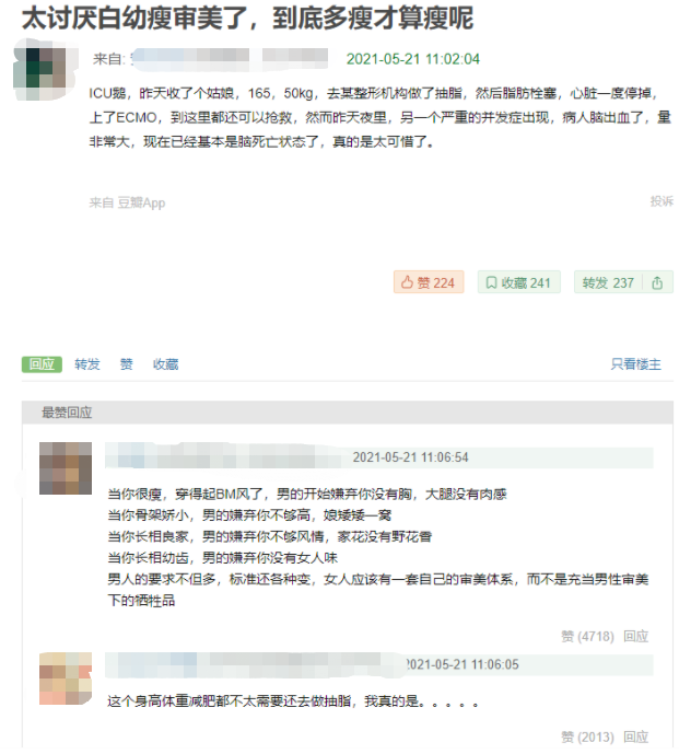 也有被外貌焦虑绑架的姑娘,明明不胖,却还要去抽脂。