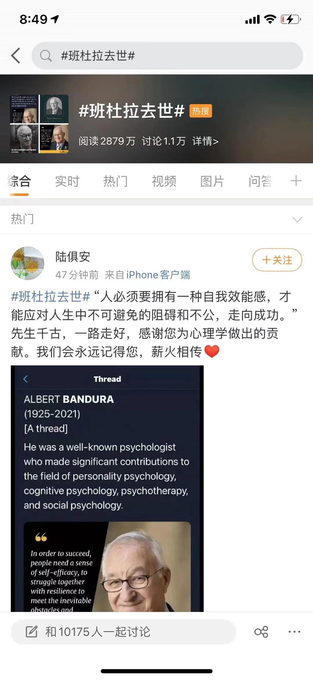 国际心理学大师,新行为主义的代表人物之一,社会学习理论的创始人阿尔伯特·班杜拉 Albert Bandura (1925-2021)去世,享年96岁。