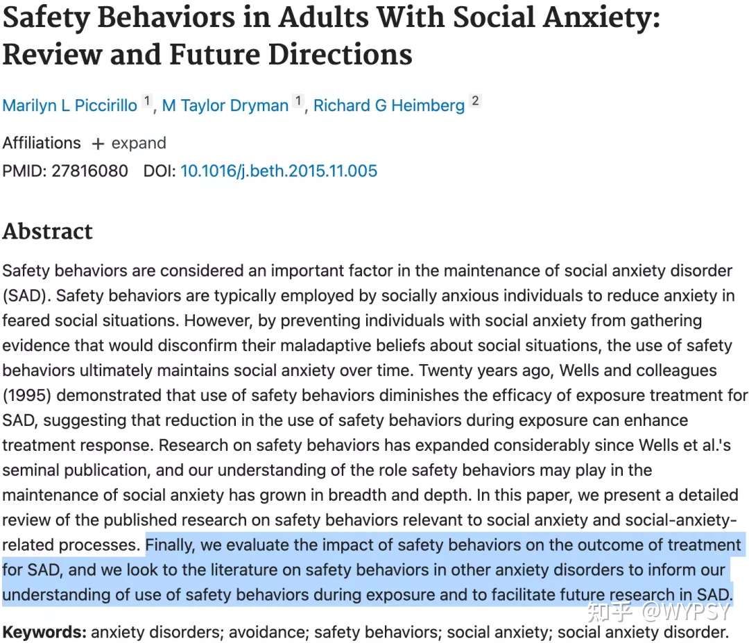 因此,在社交情境中安全行为的使用会阻碍社交学习机会、以及降低自我效能和社交能力的积极信念,增加消极自我关注以及加剧对未来社交情境的恐惧和回避行为