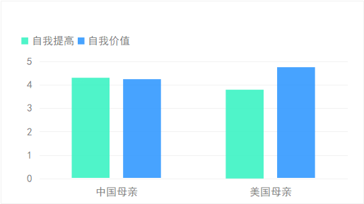 研究结果如下图3所示,中国母亲比美国母亲更多使用自我提高的目标,而美国母亲比中国母亲更多使用自我价值的目标;同时,中国母亲对自我提高和自我价值的目标的使用没有显著差异,而美国母亲更倾向于使用自我价值的目标。