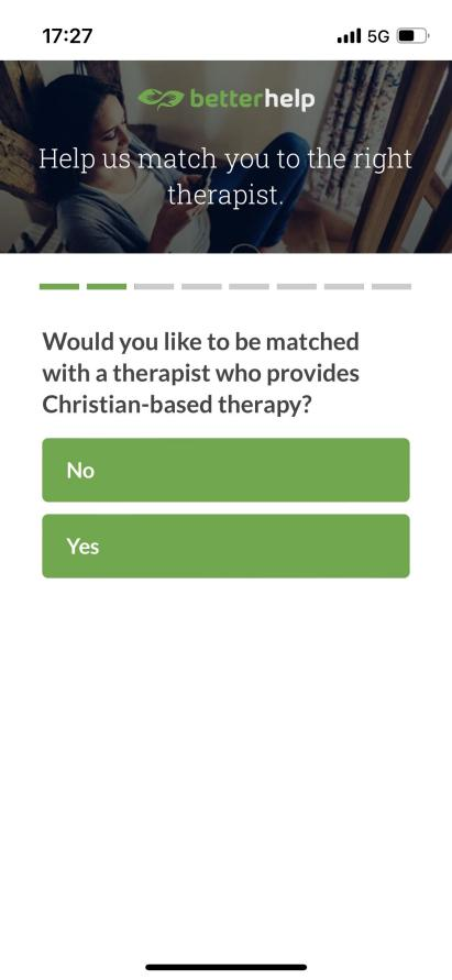 比如在前期的用户信息填写中,BetterHelp 非常重视“宗教”这个部分。BetterHelp 会询问用户的宗教信仰,甚至细致到了某个宗教下面的分支流派。