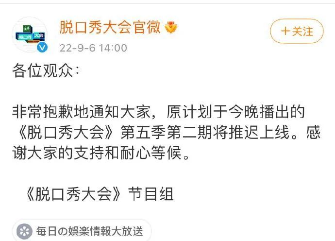 但是这样的快乐没有持续多久,官方就爆出了《脱口秀大会5》延播的消息,让许多网友都感到沮丧和失望。
