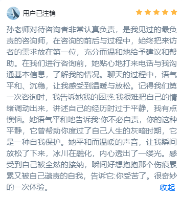 孙老师以认知行为疗法为主,与内在心理家庭系统理论/部分心理学相结合,并借鉴其他理论流派的一些咨询技术进行整合取向,为来访者解决抑郁焦虑、情绪管理、童年创伤、人际关系、自我认同、个人成长等议题。