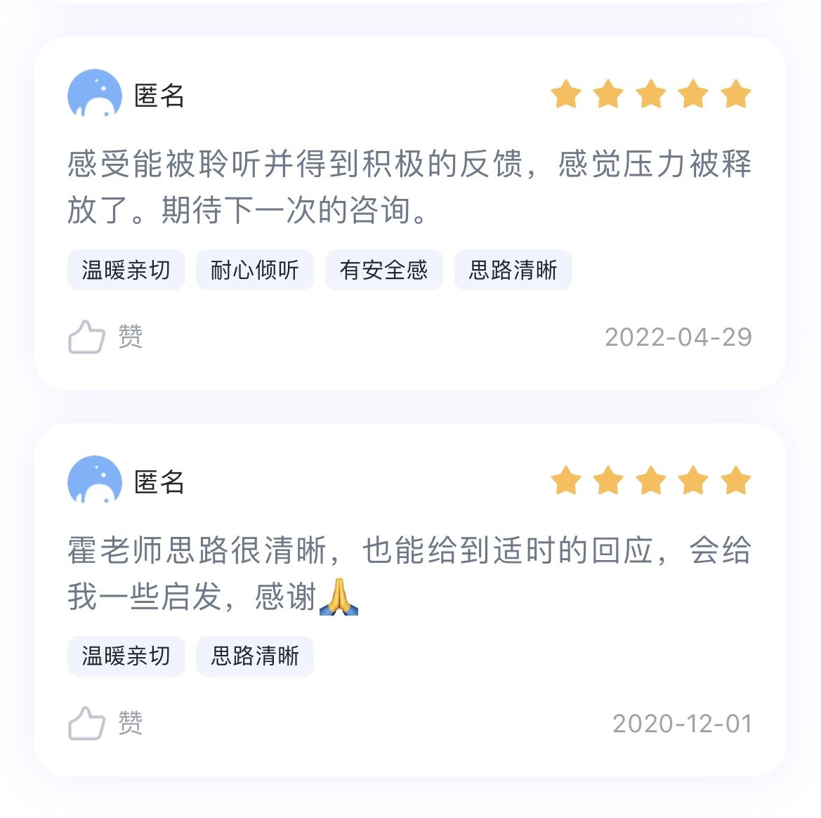 霍老师咨询风格温和灵动、耐心细心,非常关注来访的感受和节奏。