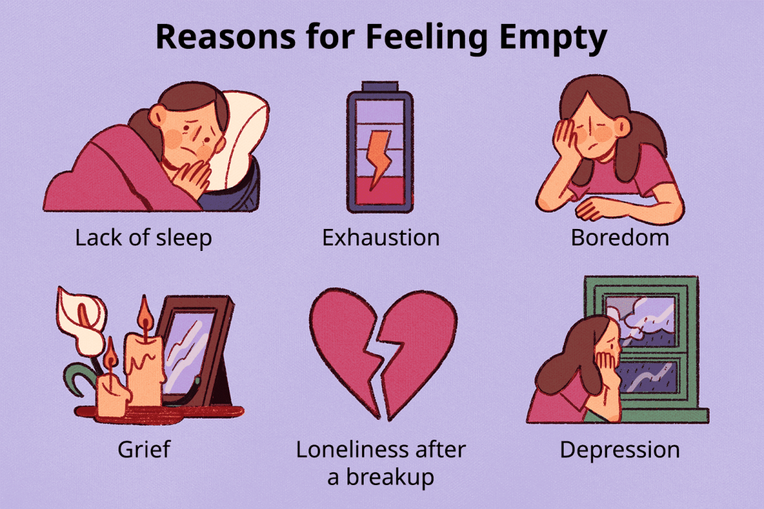 每个人都会时不时感到内心的空虚,这种经历会有很多原因,包括荷尔蒙水平的变化,事业或大流行疾病带来的居家封闭。从小方面到大事件。像我们开头前面的那些现象一般都是日常小事,而有些人拥有的空虚感是源于经历了死亡,或者人生失意。像死亡和分离,突然缺失的关系和对离别的恐惧会很容易使人产生低落焦虑、不知所措的情绪,感觉生活缺乏了意义。