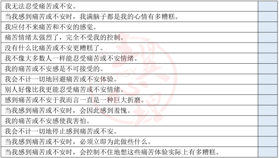 因此决定个体痛苦耐受程度的并非情绪本身的强度,而是个体在多大的程度因情绪而感到害怕、不悦、无法忍受以及试图逃避的程度。