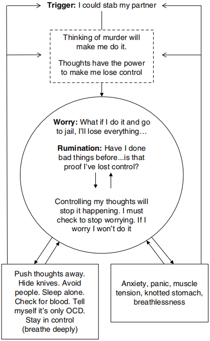 举个例子,帮助患者去认识到如果他们不再对强迫思维抱有“如果我想象自己是个谋杀犯就说明我的确如此”诸如此类的元认知信念,那么患者就能够将强迫性思维视为无意义的心理活动。