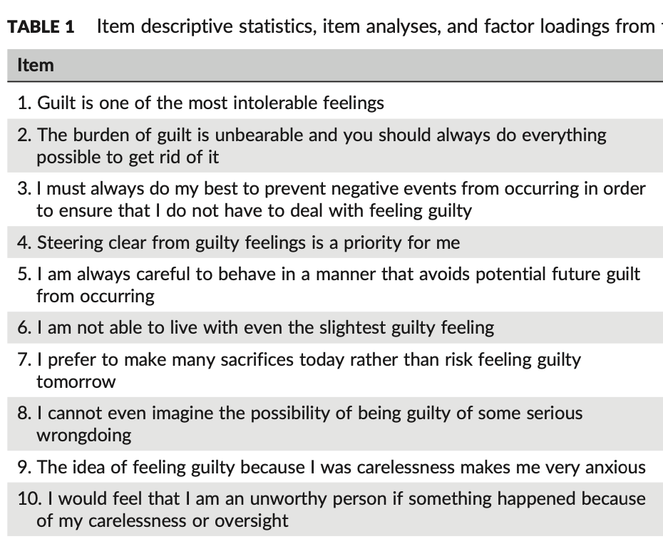 如何评估OCD患者的内疚敏感性呢?下面有10个问题用来帮助OCD患者测量其内疚敏感性。