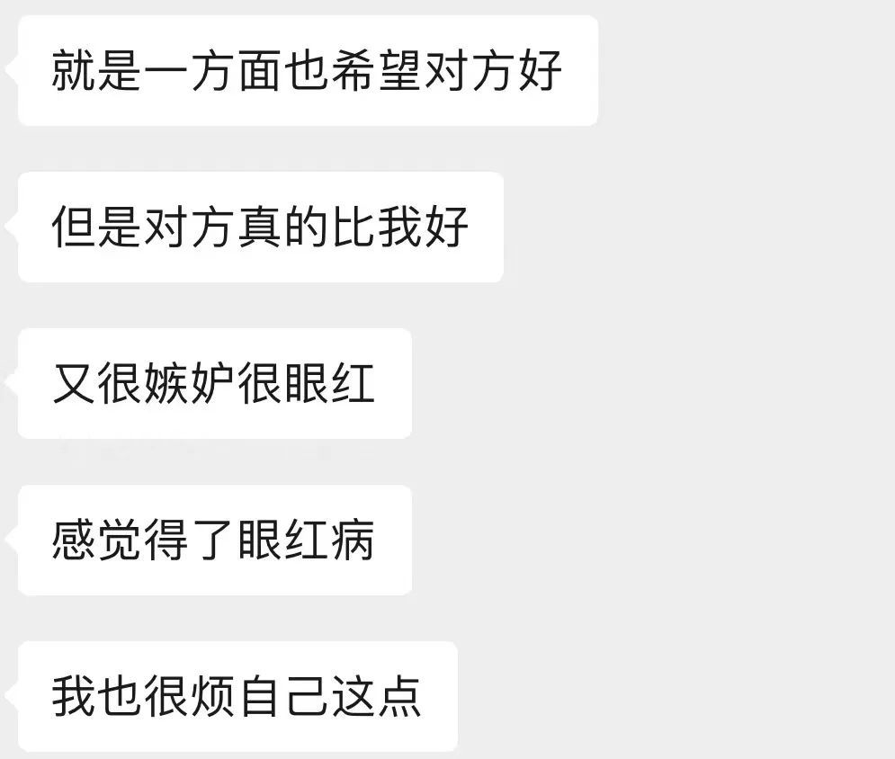 从她的描述里,我发现“嫉妒者”痛苦的原因是,ta们普遍认为: