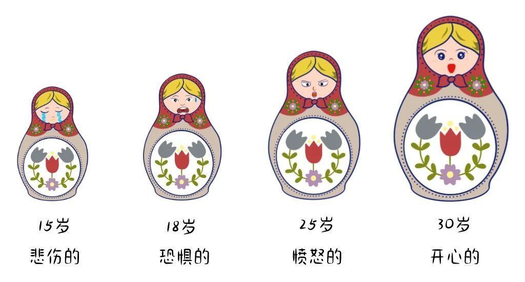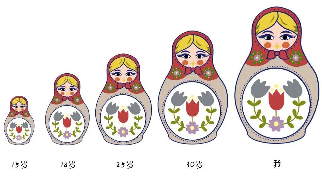 事后岛主想到,我们的人生好像一套“套娃”,是由不同阶段的自己组成的:1岁、 2岁......30岁......一个套着一个,将不同阶段的人生片段整合起来,最终组成了一个完整的自己(每个人的成长节点因人而异,以下仅以岛主自己为例)。