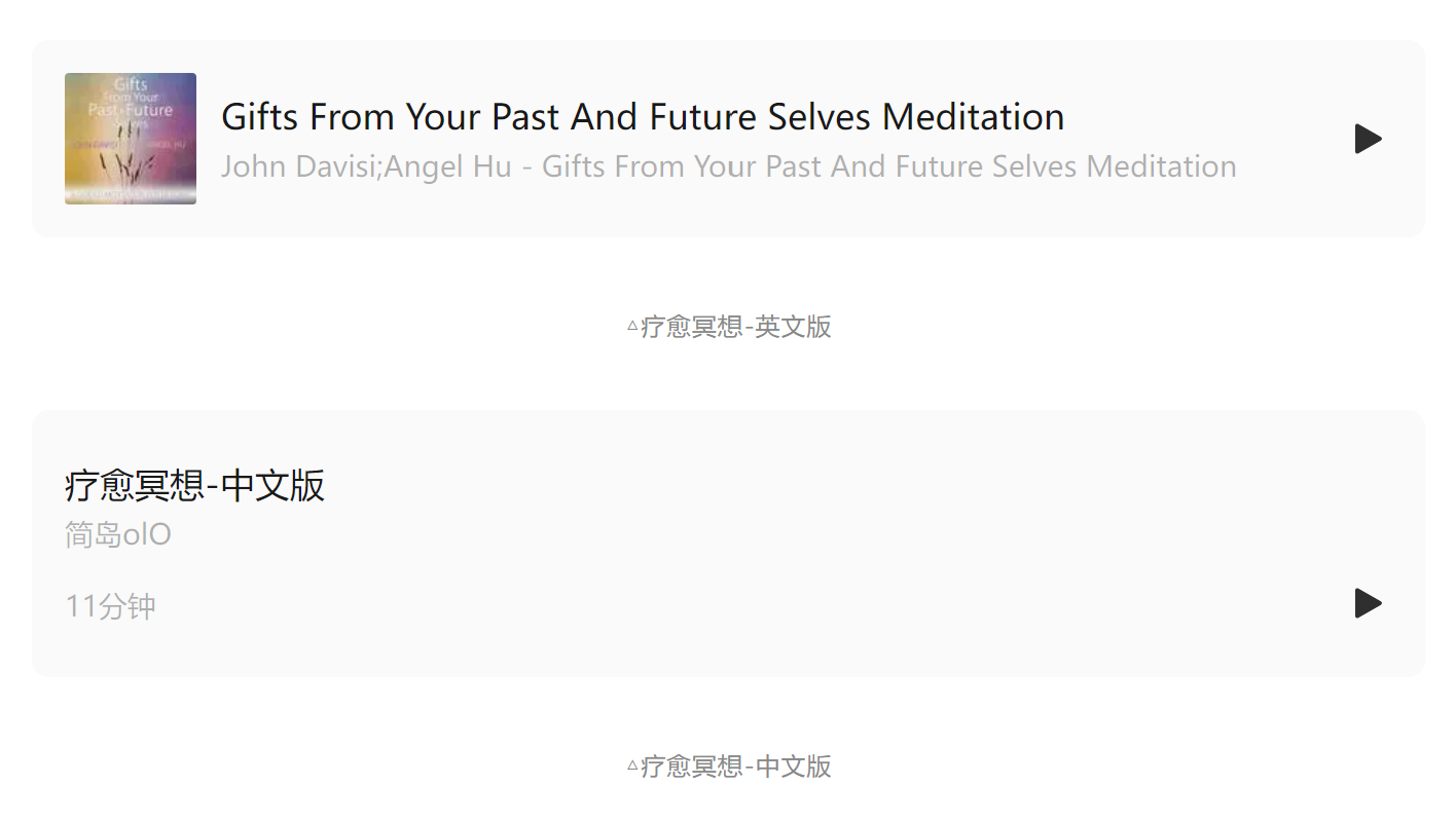 最后,附上两个10分钟的疗愈冥想音频(内容相同,中英文版;中文版是岛主自己翻译录制,较粗糙,请见谅)。
