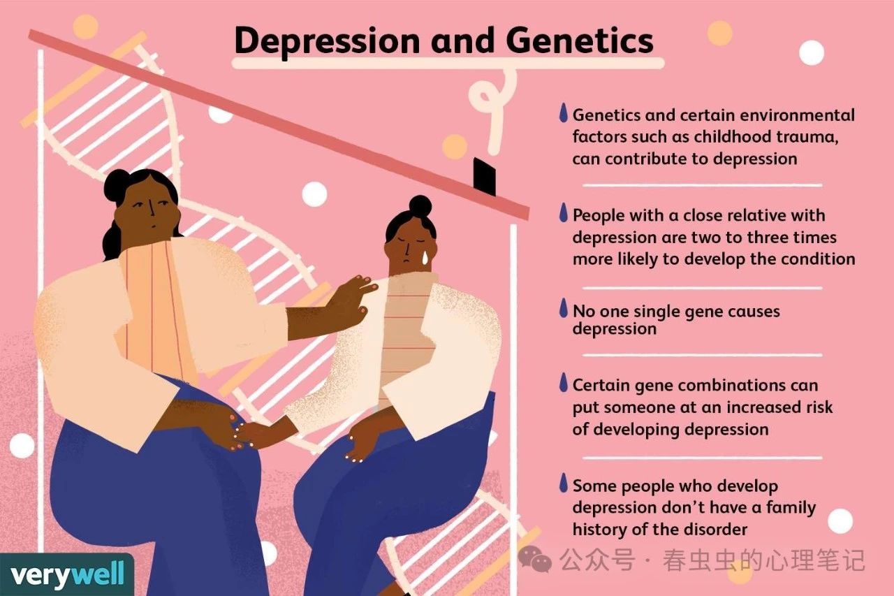 研究发现,某些基因的变异可能增加一个人患上抑郁症的可能性。这些基因与大脑中神经递质的调控、应激反应以及情绪处理等方面有关。然而,抑郁症的发生通常是多因素的,环境因素和生活经历同样重要。