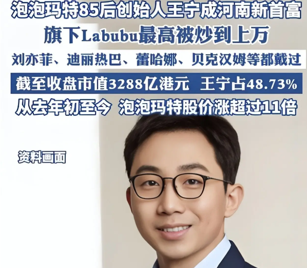 Labubu。作为一款“盲盒”产品,掀起全球抢购狂潮,被称为年轻人的“社交货币”,也让推出这款产品的公司泡泡玛特赚得盆满锅满,公司老板也由此登上河南首富宝座。