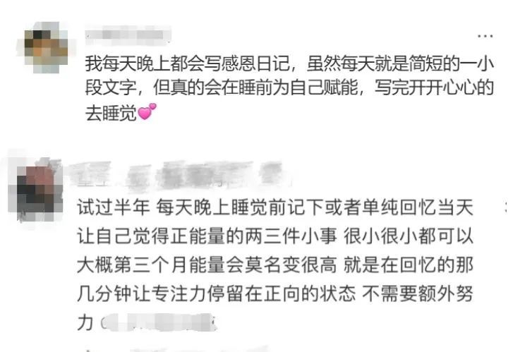“写感恩日记会在睡前为自己赋能,写完开开心心去睡觉”;