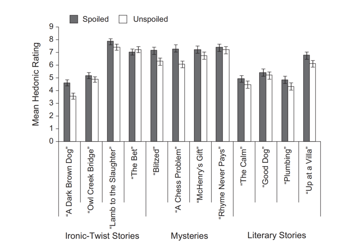 [3]Leavitt, J. D., & Christenfeld, N. J. (2011). Story spoilers don't spoil stories. Psychological science, 22(9), 1152–1154.