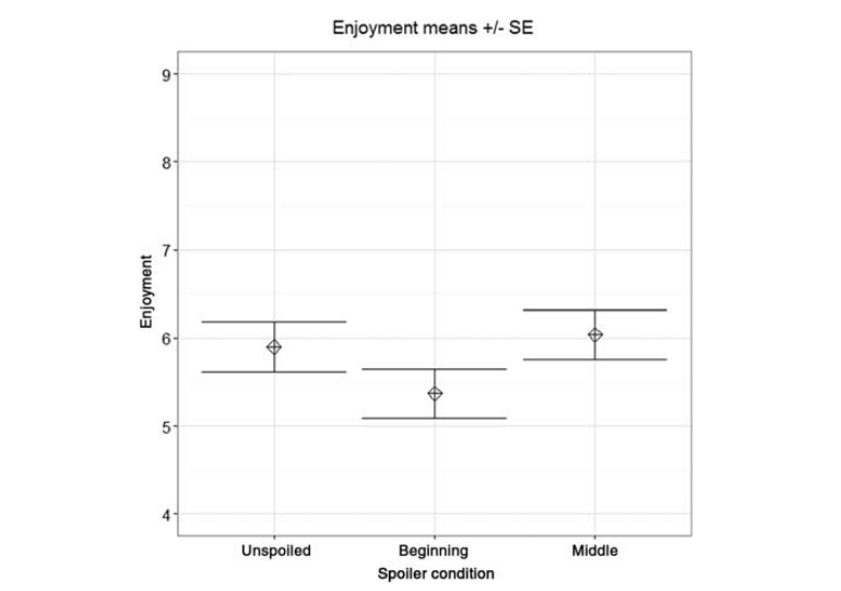 [5]Levine, W. H., Betzner, M., & Autry, K. S. (2016). The Effect of Spoilers on the Enjoyment of Short Stories. Discourse Processes, 53(7), 513–531.