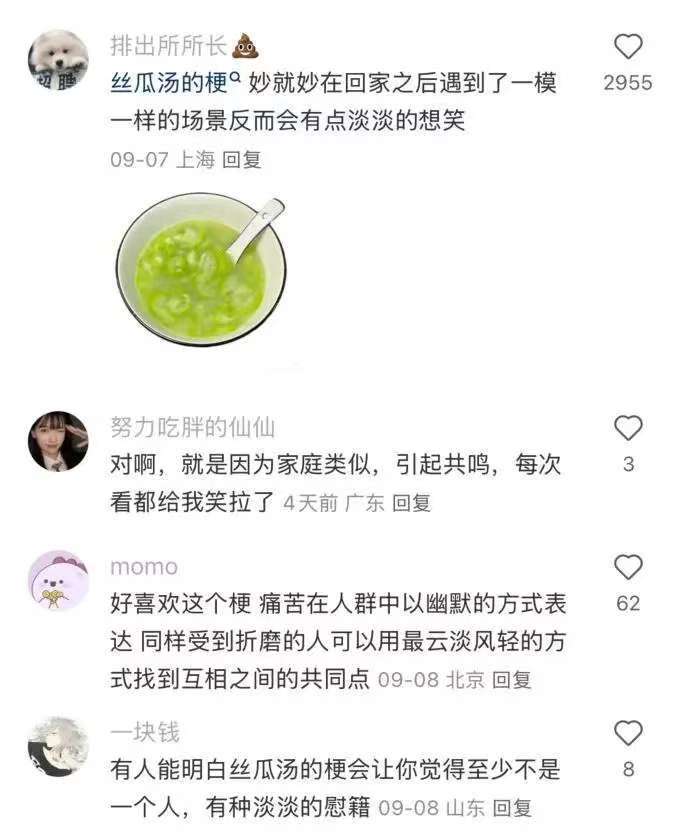 从这个层面来看,与其说“丝瓜汤”是在玩梗,其实更像是一场集体的心理疗愈。