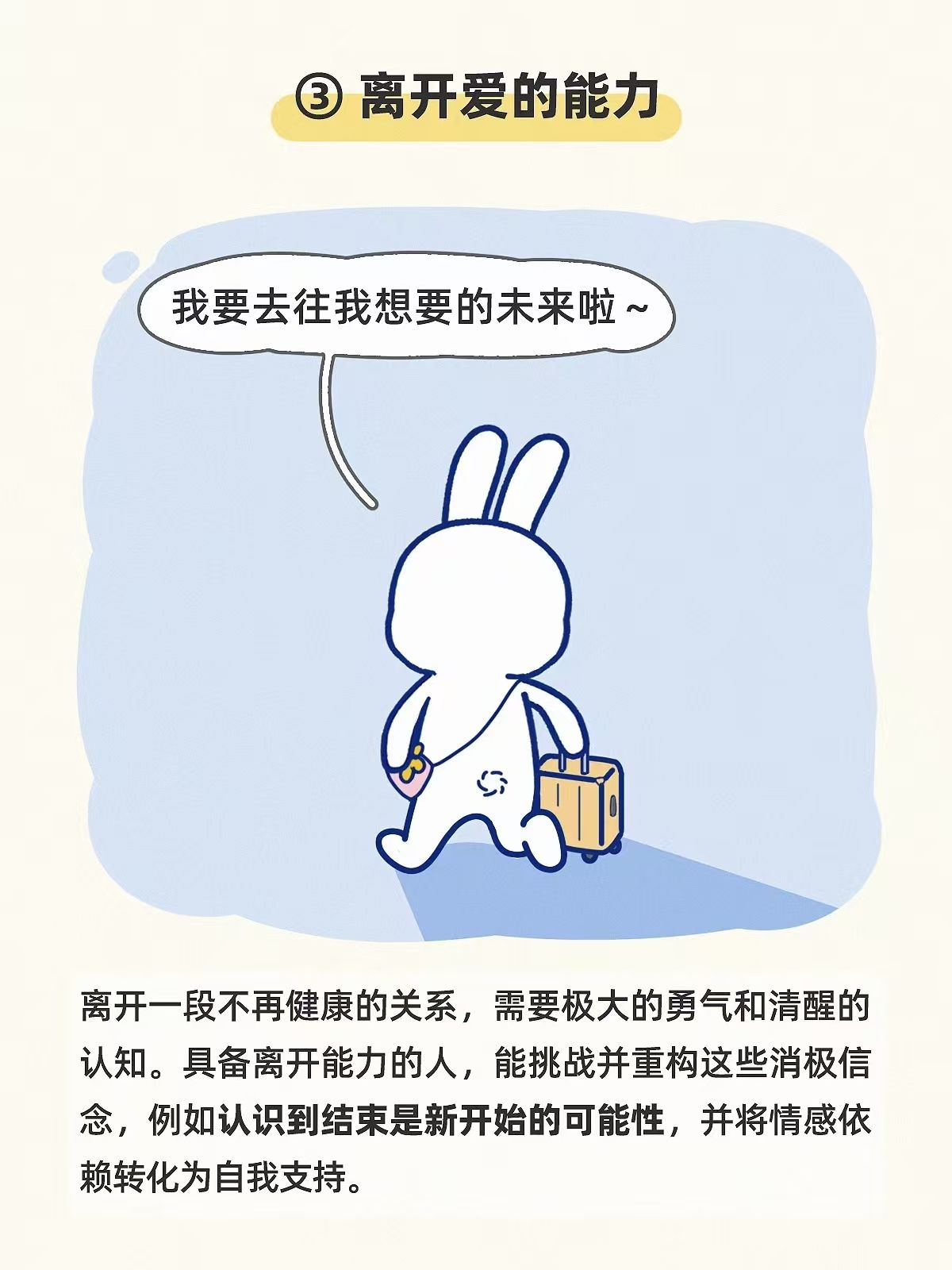 离开一段不再健康的关系,需要极大的勇气和清醒的认知。具备离开能力的人,能挑战并重构这些消极信念,例如认识到结束是新开始的可能性,并将情感依赖转化为自我支持。