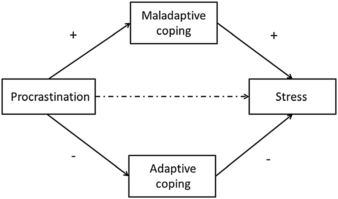 拖延带来的问题是它可能造成恶行循环,越拖延,越不愿意有效应对,而更愿意进行以情绪舒缓为目标的无效应对。同时这些无效应对在一定程度上又加重了压力,导致更加拖延(如下图)。
