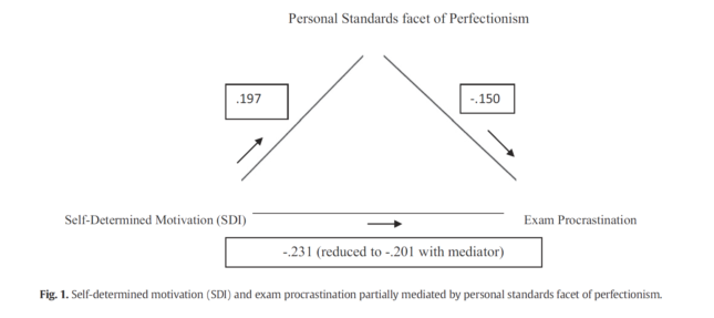 高自我决定动机,与适应性完美主义倾向有关,他们都可以负向预测考试拖延