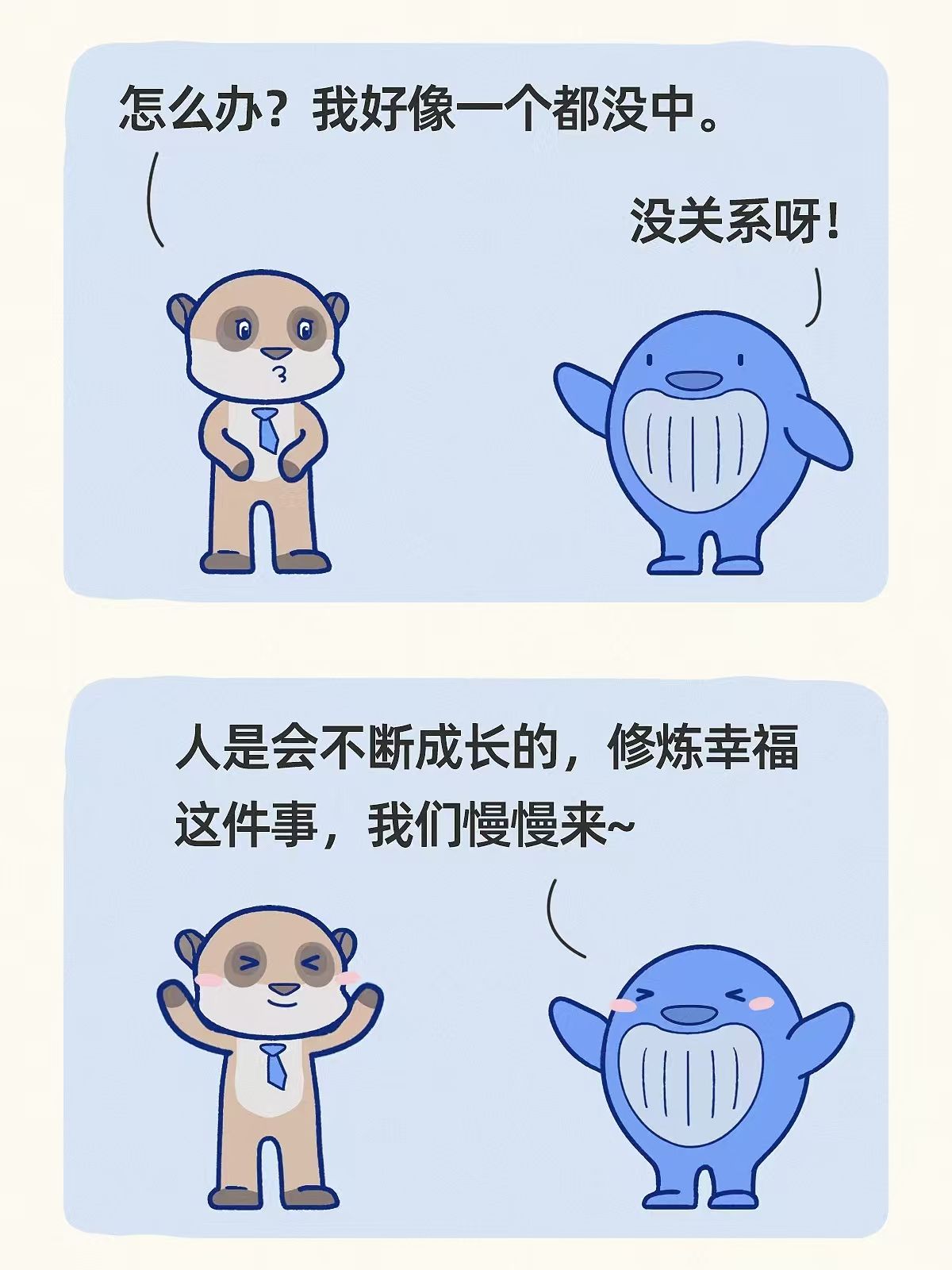 面对挫折、失败时,像对待亲近的朋友一样对待自己,学会自我关怀、接纳自己的不完美,承认自己有不足,但这不妨碍你值得被爱。