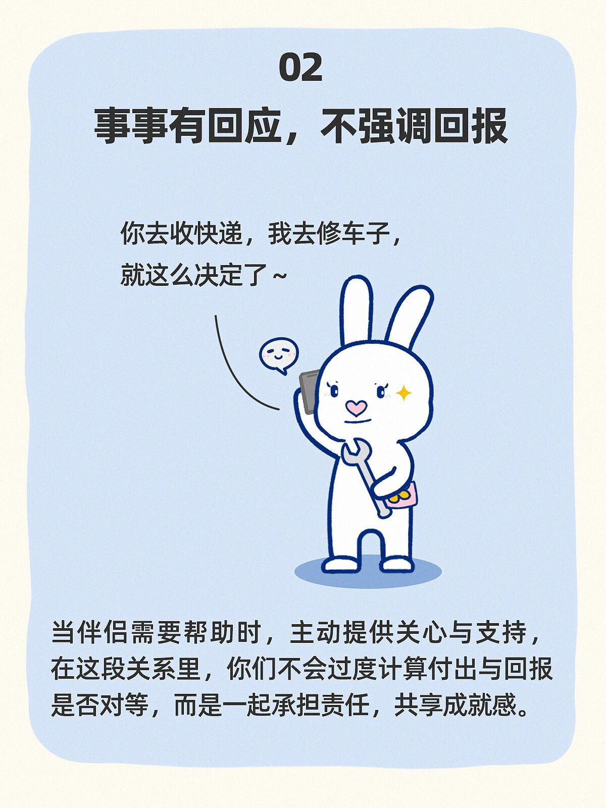 当伴侣需要帮助时,主动提供关心与支持,在这段关系里,你们不会过度计算付出与回报是否对等,而是一起承担责任,共享成就感。
