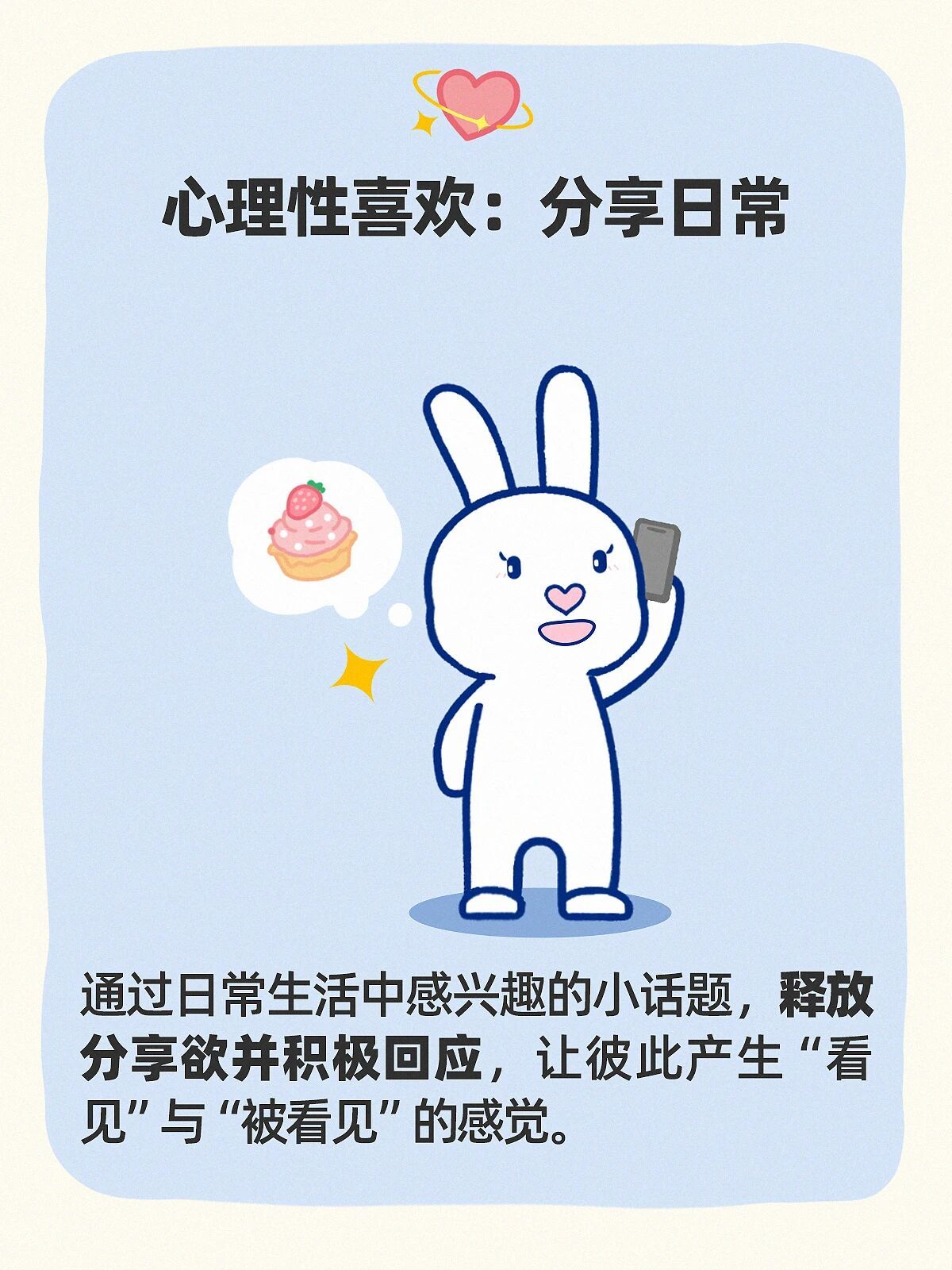 通过日常生活中感兴趣的小话题,释放分享欲并积极回应,让彼此产生“看见”与“被看见”的感觉。