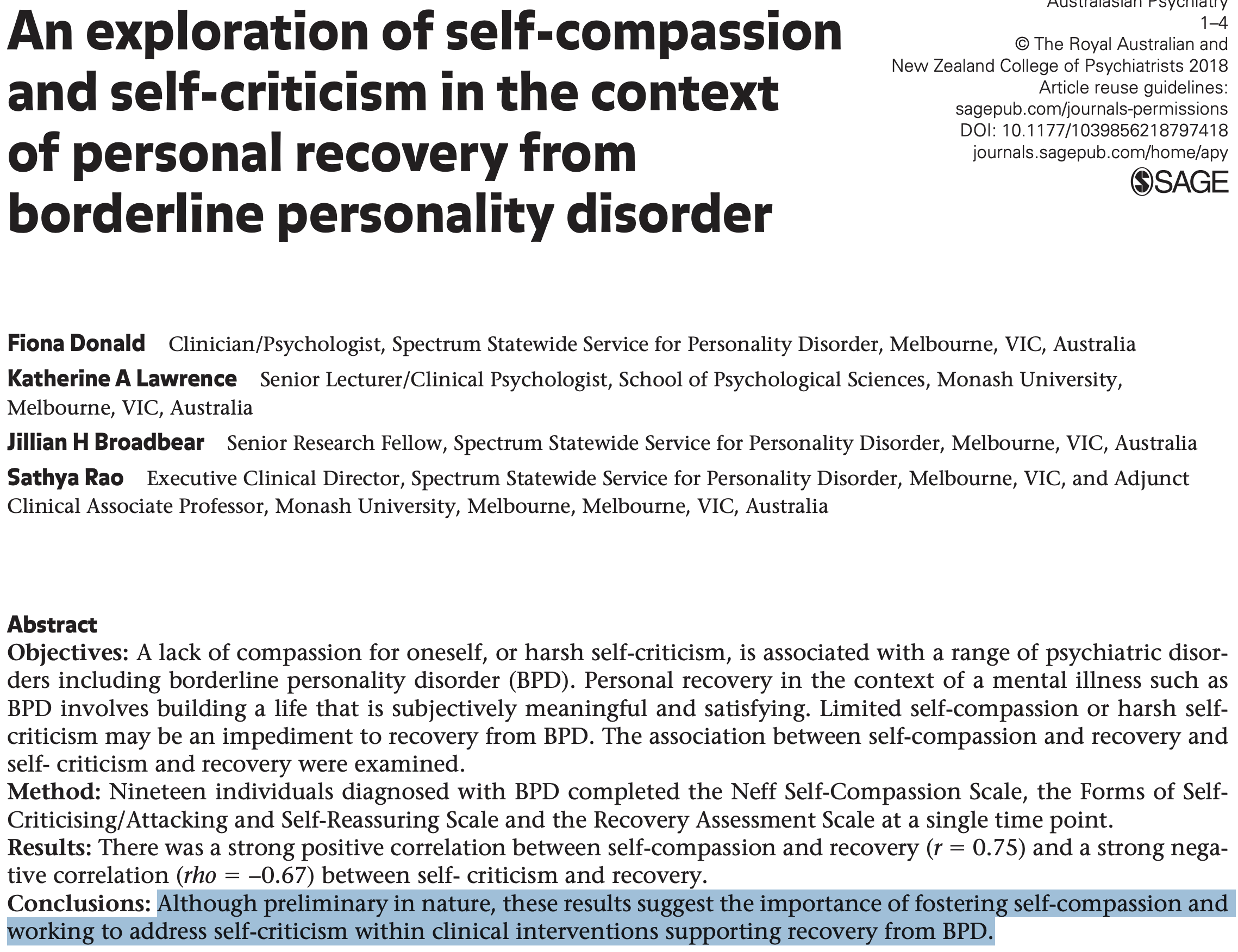 一项关于自我批评、自我同情与恢复水平的研究发现,在BPD个体中,自我批评与康复结果呈中度至高度负相关(见下图)「23」。