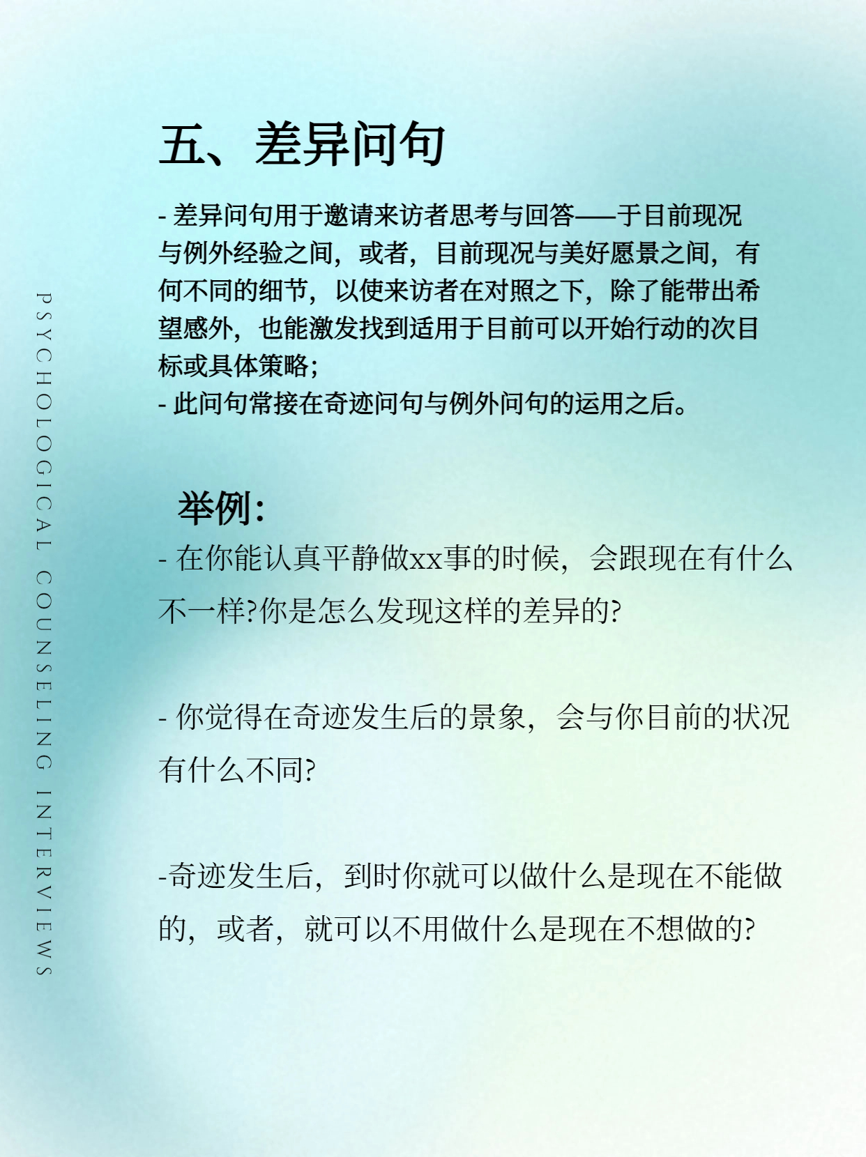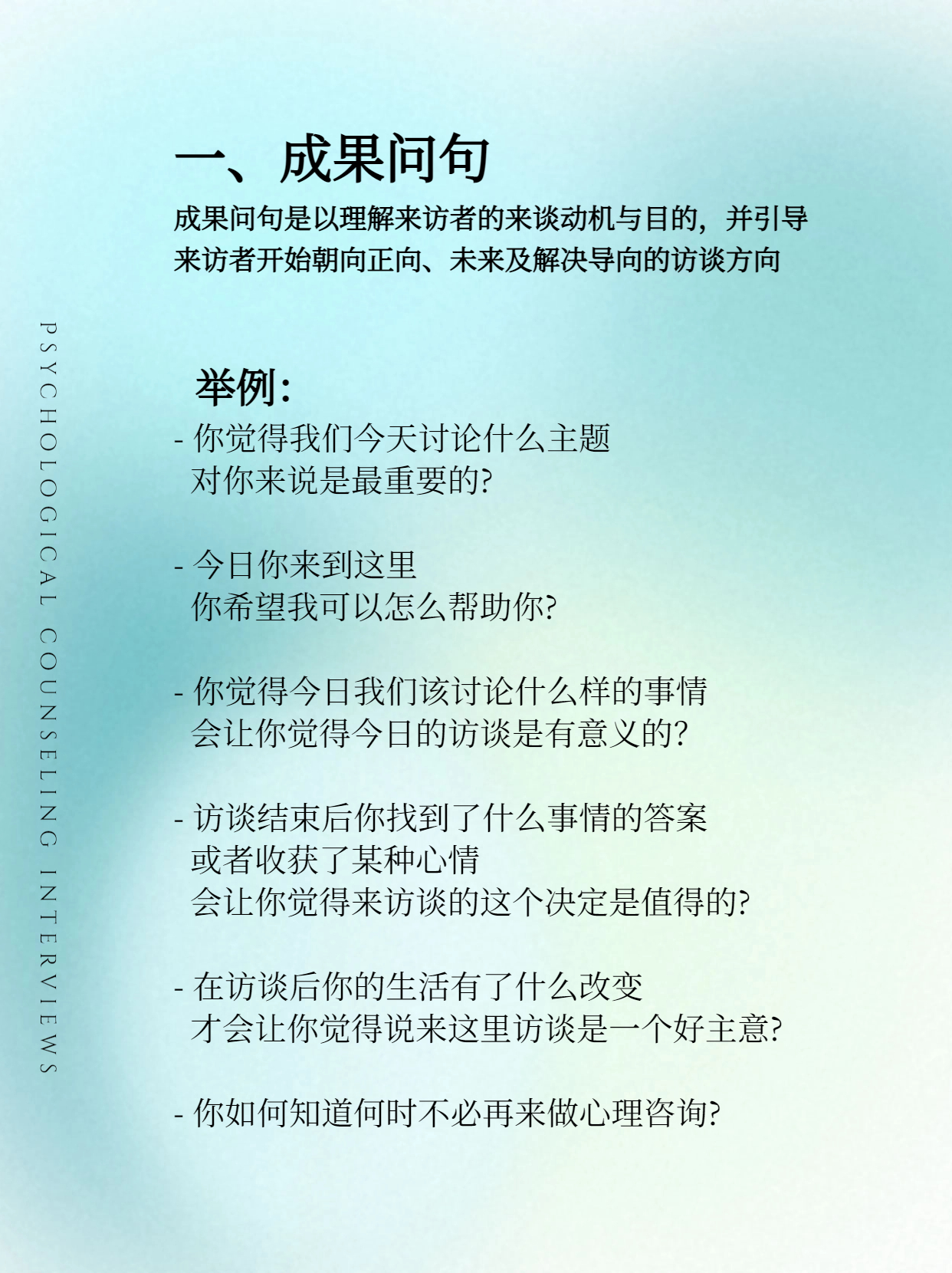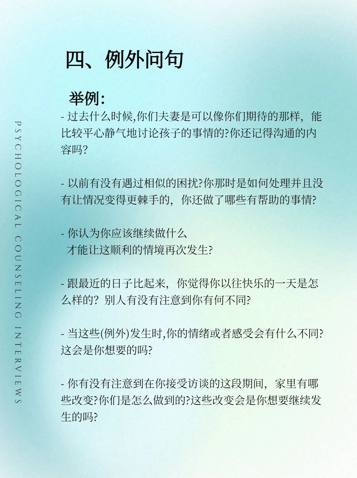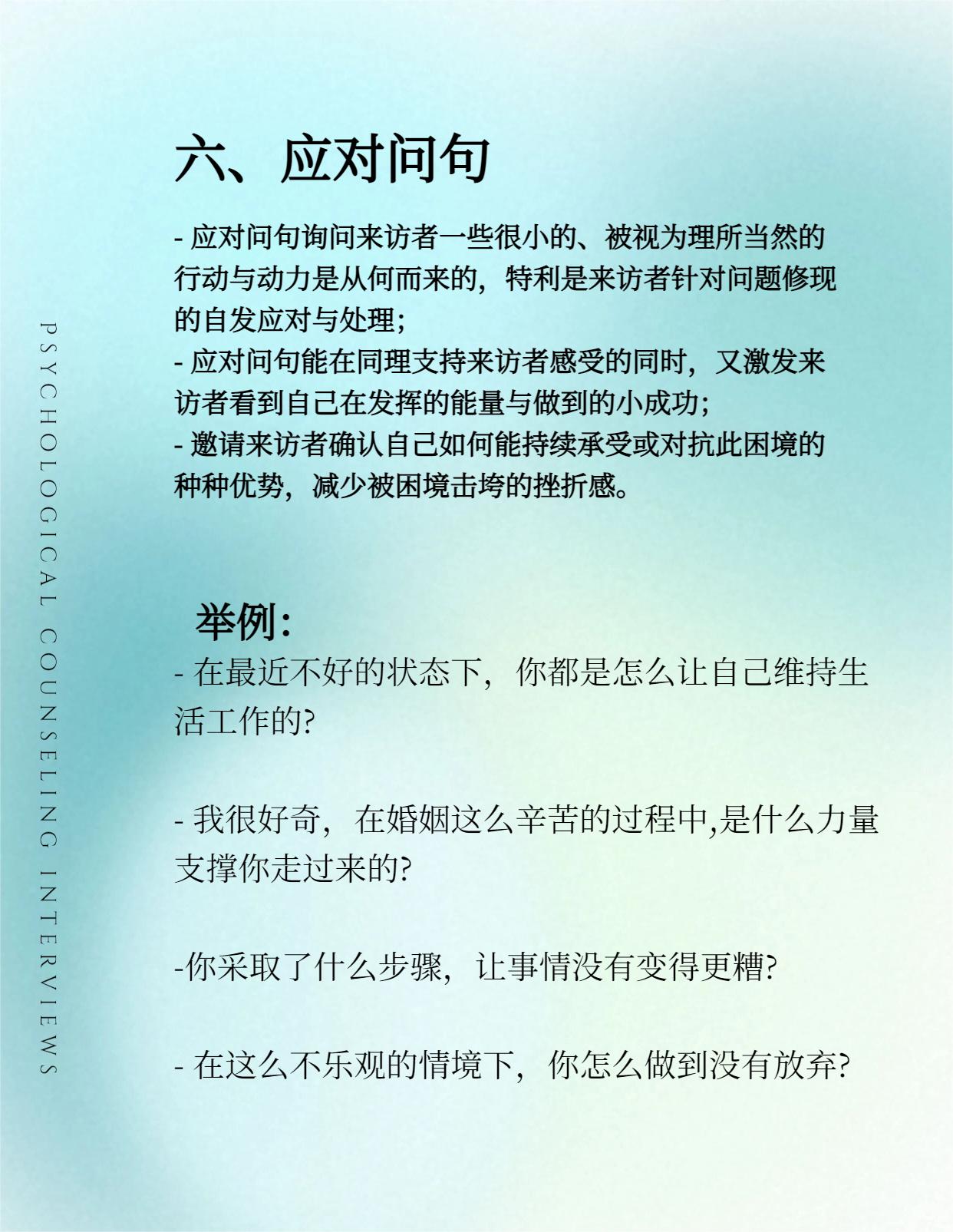 这些问句深深嵌入所有流派的会谈技术之中。